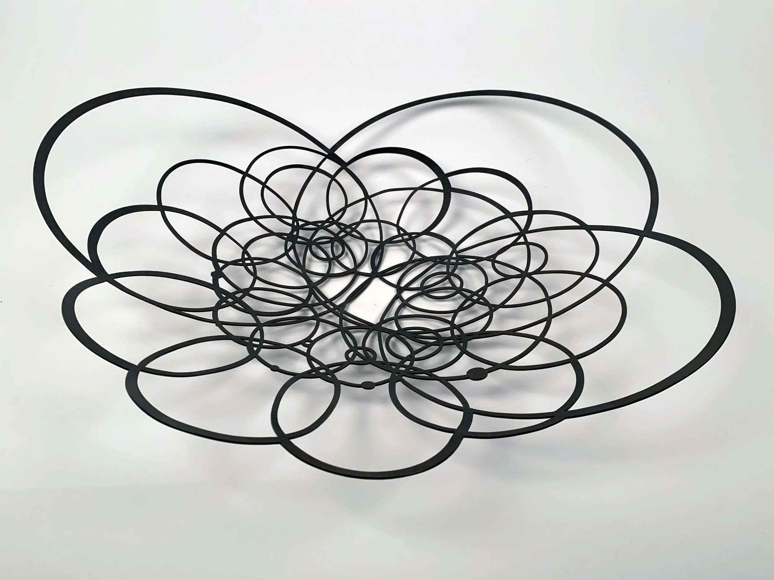 Equal but Different is about accepting the differences of all people, genders, and races. This work was created by utilizing statistical data of the ethnicity and gender of the members of the 116th Congress (the most diverse in US history) and custom code to generate a drawing. I refined and manipulated the drawing for water-jet cutting and hand-forged the steel to form baskets -- a celebration of the progress women have made in the last century. The negative space is symbolic of the work yet to be done for women and people of color to be recognized, treated equally, and ultimately celebrated as valuable individuals in our society. We need more women and diversity in leadership, and all of our differences to be respected by society. I am influenced by and have the deepest respect for trailblazing blacksmith Elizabeth Brim. Brim has been celebrating femininity through blacksmithing for decades. Her mother did not think of blacksmithing as a very “ladylike” trade, so she has always worked iron while wearing a strand of pearls. Her delicate ironwork speaks to resilience and strength with a balance of feminine sentiment.